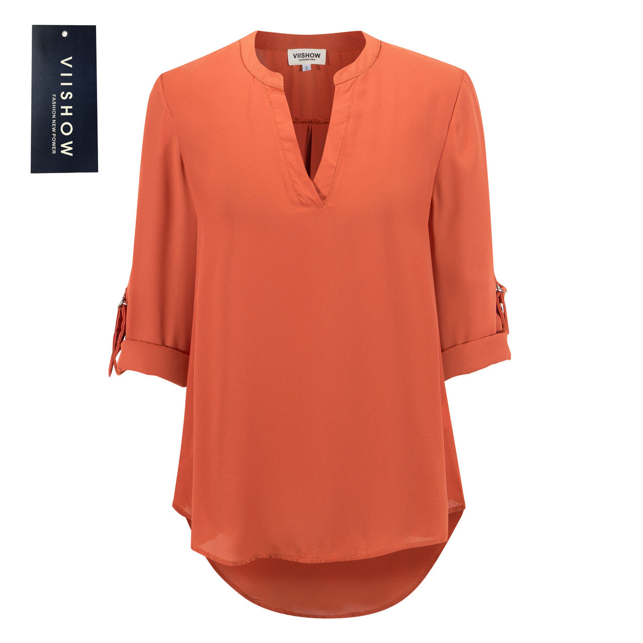 Women's Summer Blouses V Neck Cuffed Sleeve Blouse Shirts Tops