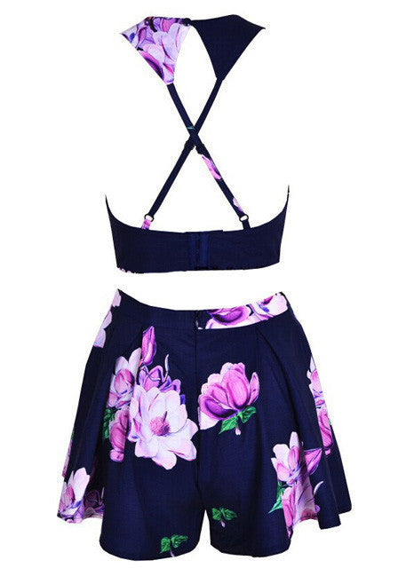 Looking for a way to stay chic and sassy this season? This floral print co-ord set is for you.This two-piece dress is adorned with huge flower prints that perfectly reminds us of spring and cool, floral pastures. The sleeveless crop top is designed with a scoop neckline that forms into a crisscross style at the back. This partially lined dress also has a three-hook back closure for extra support. A flirty pleated skirt completes this sassy two-piece dress.