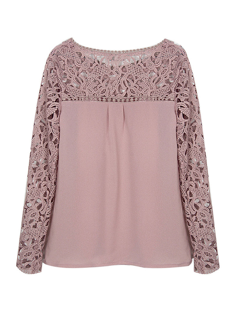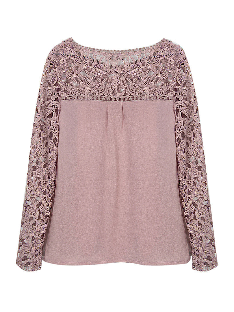 This Bisque Lace Panel Blouse crafted in polyester fiber,non-stretchable material,please hand wash cold,featuring lace panel sleeves design,round neck,ruched detail,long sleeves,regular fit blouse.Casual style,textured fabric,perfect cut,full details of the sense of design,personalized and fashion.Dating with your lover in this crochet lace top,immediately catch his eyes.Make your top fashion with a shorts or a pair of skinny jeans!