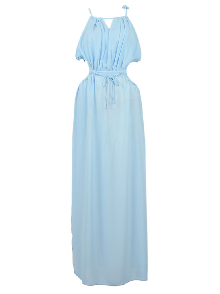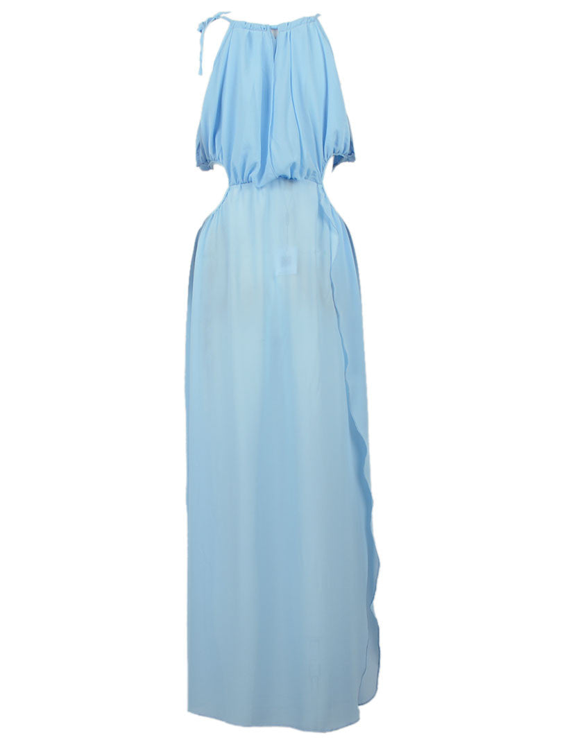 Sky Blue Cut Away Open Waist Split Maxi Dress