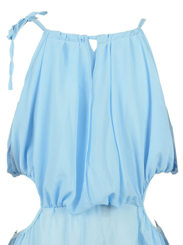 This blue cut out beach maxi dress crafted in polyester, non-stretchable material, please hand wash cold, featuring plain design, maxi , sleeveless. casual style, textured fabric, perfect cut, full details of the sense of design, personalized and fashion.